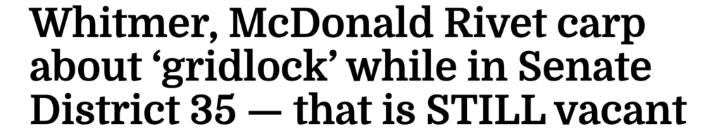 “Despite numerous calls from lawmakers, local leaders, businesses, political allies and public rallies and a lawsuit demanding Whitmer schedule a special election, the governor has refused to do so, offering no rationale for the delay as McDonald Rivet remains silent.”