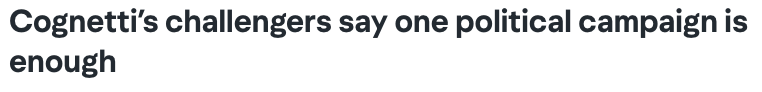 As if the bad press wasn’t enough, Cognetti already faces a primary challenger less than three days into her vanity campaign.
