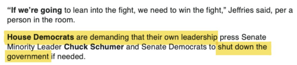 ‘Leader’ Hakeem Jeffries and his band of radical House Democrats are not hiding their wish to shut down the government over their Trump Derangement Syndrome, as reports reveal they’re “demanding” Senate Democrats to “shut down the government if needed.”