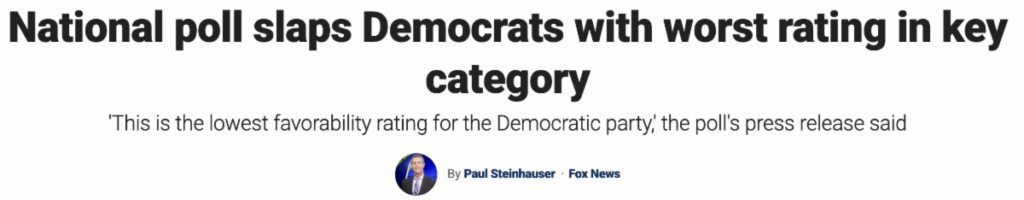 Democrats just scored their lowest favorability in Quinnipiac history, with only 30% of voters viewing them favorably. It’s no wonder: Democrats just voted to shut down the government to protect handouts for illegal immigrants instead of keeping the government open for hardworking Americans.