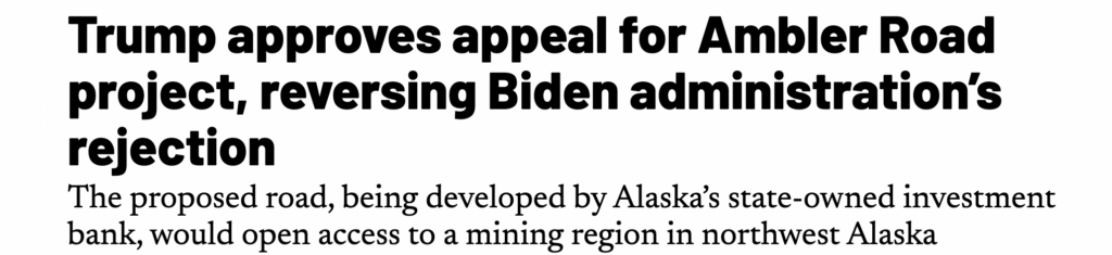 Yesterday, President Trump approved the Ambler Road Project to unleash Alaska’s resource potential, ensuring American and Alaskan prosperity.
