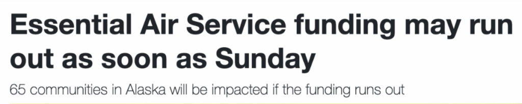 A new report is highlighting that “funding for a federal program that supports flights from 65 communities in Alaska may run out as soon as Sunday due to the government shutdown.”