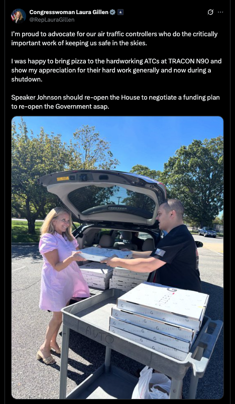 In case you missed it, out of touch Democrat Laura Gillen voted to shut down the government. Then, over the weekend, she put on a fake stunt and pretended to care about the very air traffic controllers whose paychecks she voted to take away.