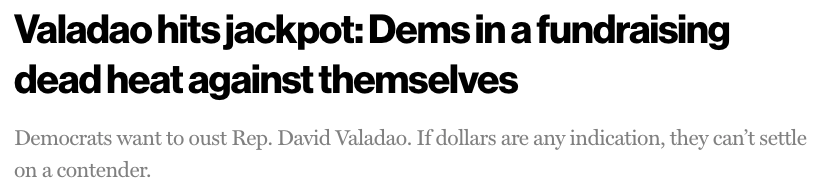 The math isn’t hard: while Republican David Valadao keeps stacking a war chest nearing $1.8 million, Democrats are in disarray led by Randy Villegas, the Zohran Mamdani of the West, who’s somehow sitting on over $50,000 more cash on hand than their own establishment favorite, Jasmeet Bains.