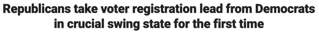 In case you missed it, North Carolina Democrats like Don Davis are in significant trouble. For the first time in state history, Republicans have overtaken Democrats on the voter rolls after erasing a nearly 700,000 registration deficit over the past decade.