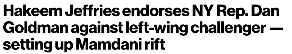 So-called ‘Leader’ Hakeem Jeffries endorsed embattled Democrat Dan Goldman, who is facing a tough primary battle from Zohran Mamdani-backed radical Brad Lander.