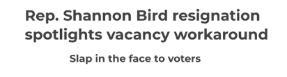Reporting highlighted that, “Bird’s unique timing for vacating HD 29, which includes parts of Adams and Jefferson counties, takes advantage of a quirk in the law allowing for her replacement to serve possibly an entire extra year more than state statute sets forth for House members.”