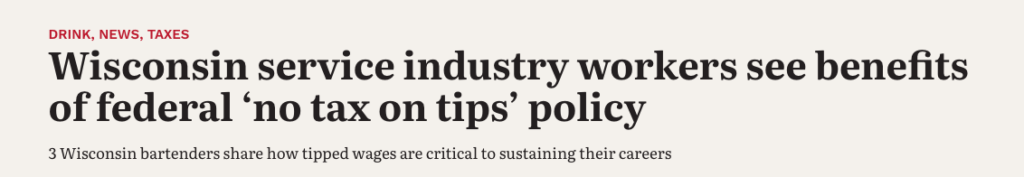President Trump and Congressman Derrick Van Orden delivered massive tax cuts for Wisconsinites which included no tax on tips for service industry workers.