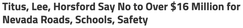 They voted NO on more than $16 million for Nevada roads, schools, airports, and public safety projects that their own communities desperately need.