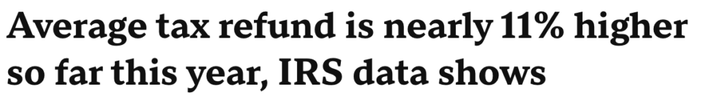 IRS data show average tax refunds hitting $2,290, up nearly 11% from this time last year.