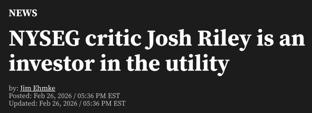 A new bombshell report exposes that lying Josh Riley invests in NYSEG’s parent company, Iberdrola, despite claiming repeatedly that he’s fighting their rate hikes.