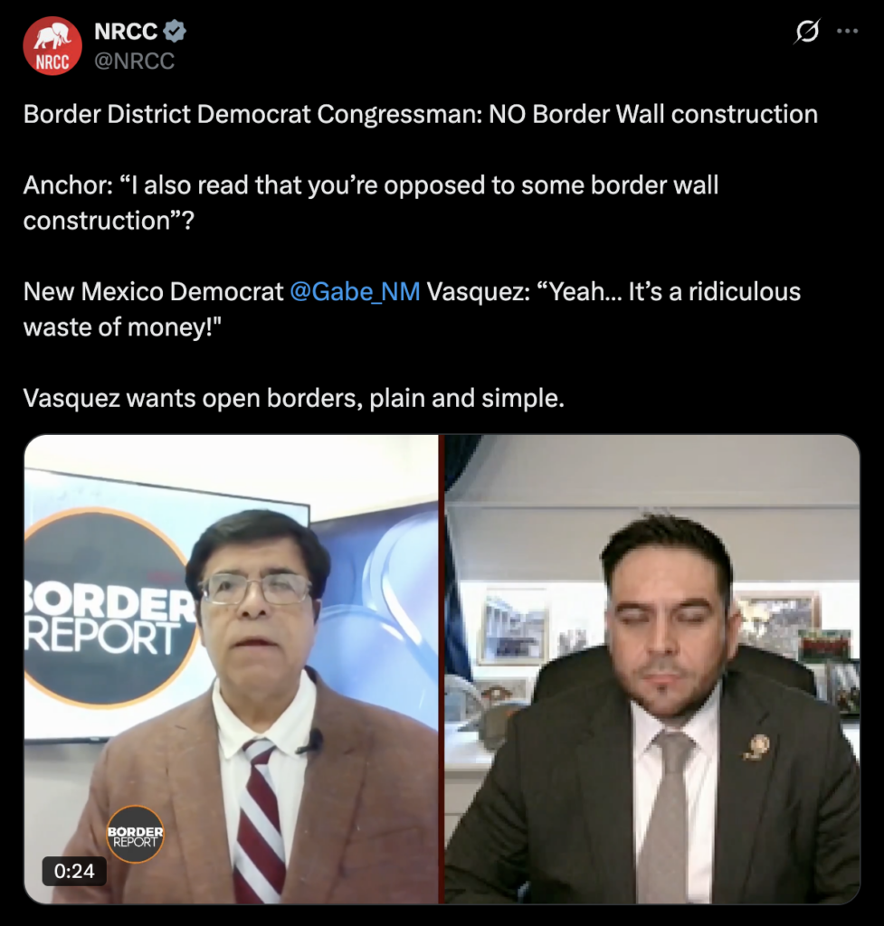 “Out of touch Democrat Gabe Vasquez will always choose his radical base over the New Mexicans he’s supposed to represent. Vasquez has never been serious about protecting Americans.” – NRCC Spokesman Reilly Richardson