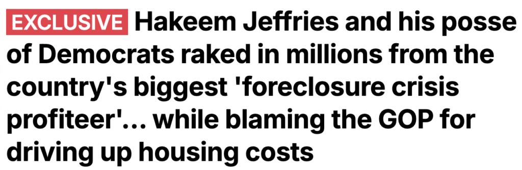 So-called ‘Leader’ Hakeem Jeffries and his band of do-nothing Democrats love to lecture Americans about the housing crisis and accuse Republicans of helping “big donors.”