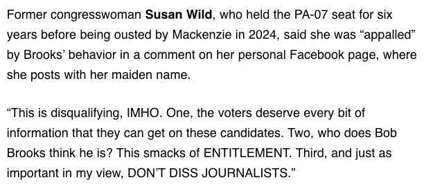 After Bob Brooks’s disastrous debate performance last week, Pennsylvanians, including former PA-07 Representative Susan Wild, began to question the viability of his campaign.