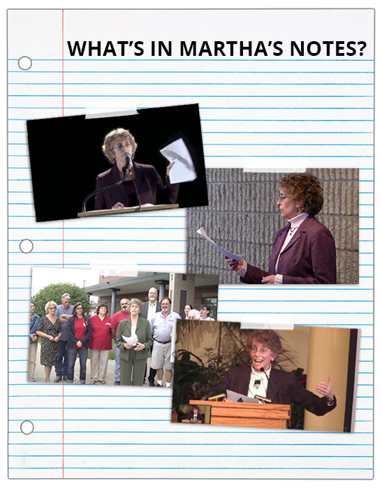 Anyone that’s been following uber-liberal Democrat Martha Robertson’s Congressional Campaign will surely have noticed that she can NEVER hold a press conference without reading from pre-prepared notes and talking points. Have you ever wondered what was in those notes? Well wonder no more, because we’ve obtained a copy of Martha’s notes!