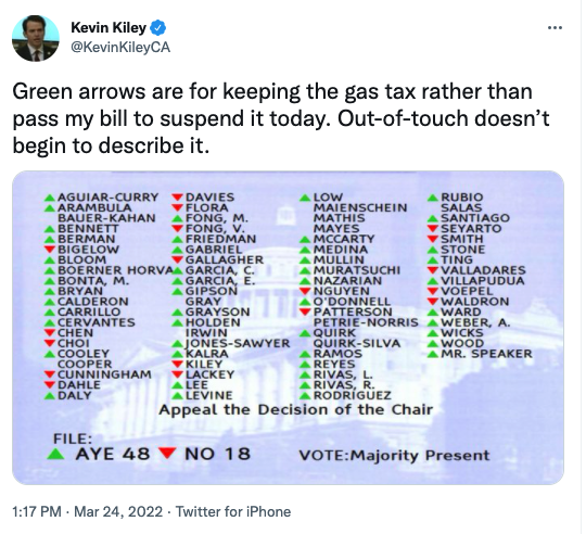 This marks the third (See HERE and HERE for the first and second) vote to suspend or delay the gas tax that Rudy Salas has skipped since 2019.