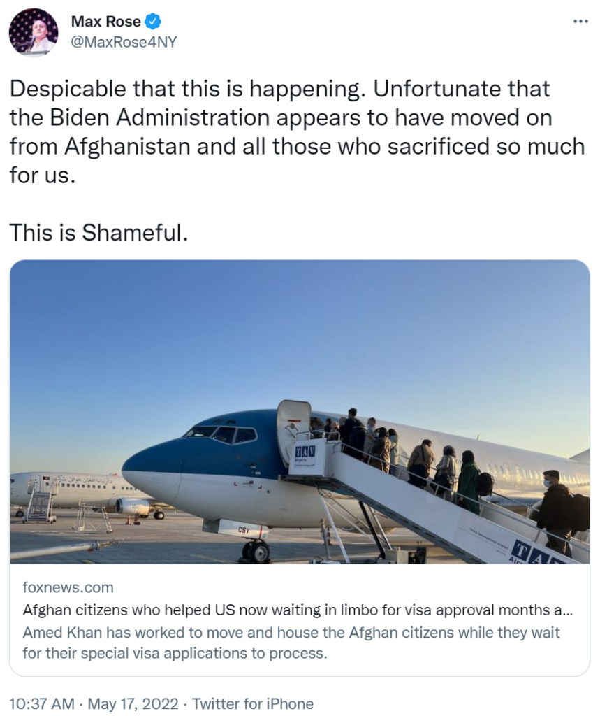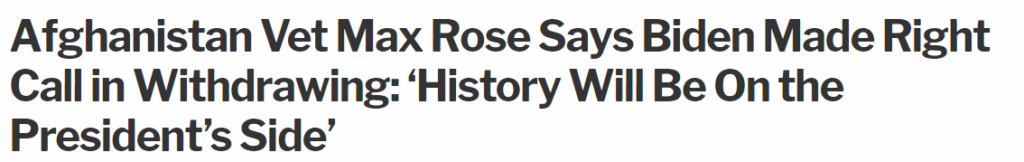SHOT: In September 2021, Max Rose said “it was the right decision” for the U.S. to leave Afghanistan and “history will be on [Joe Biden’s] side.”