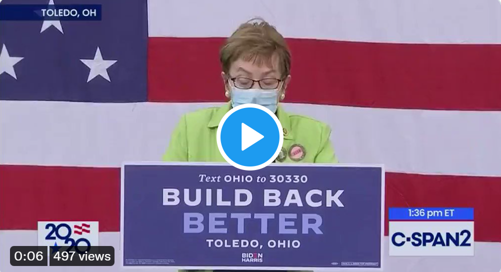 Kaptur, who votes with Joe Biden 100% of the time, is also on video saying, “It will be my honor to not just vote for Joe Biden but to work for him.”