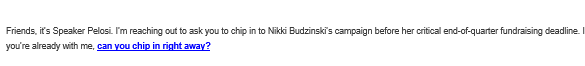 Nancy Pelosi is sending fundraising emails for D.C. insider Nikki Budzinski…