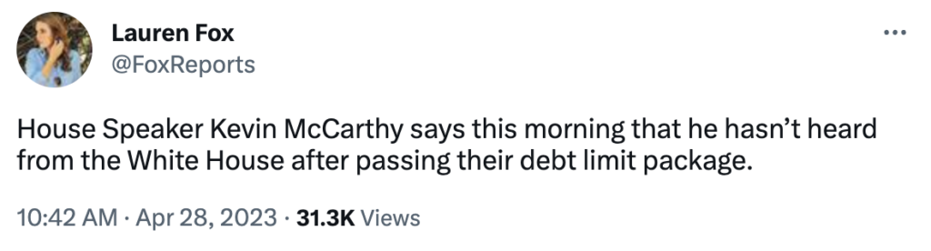 NRCC National Press Secretary Will Reinert said: “Counting on Biden to solve the debt limit crisis is like entrusting a child to pay your bills on time. Both have the time — neither have the capacity to prevent financial mayhem.”