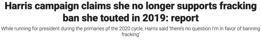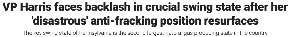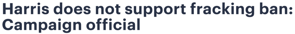 “Kamala Harris said ‘there’s no question’ she is in favor of banning fracking — no amount of political cleanup can change that fact. Extreme Democrats Susan Wild, Matt Cartwright and Chris Deluzio will soon regret endorsing San Francisco radical Kamala Harris and her far left positions.” — NRCC Spokesman Mike Marinella