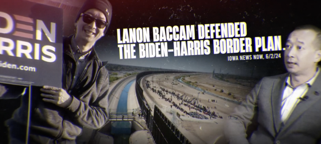 The TV ad highlights extreme Democrat Lanon Baccam’s record of standing with the Biden-Harris open border agenda that is putting Iowans’ lives at risk.