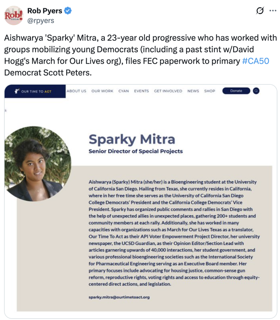 We couldn’t even get through the day until yet another David Hogg minion set their sights on challenging a liberal incumbent… this time, it’s Democrat Rep. Scott Peters: