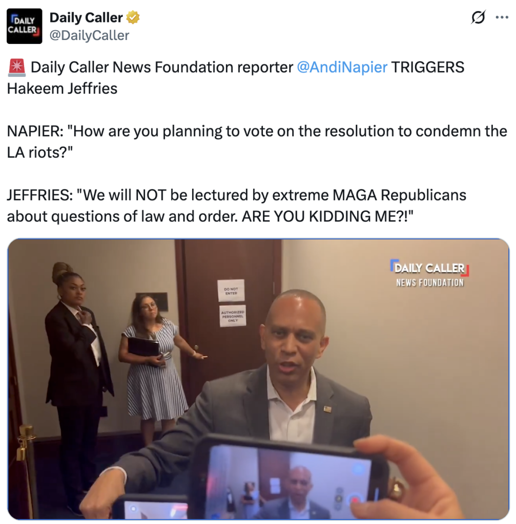 When asked about a simple resolution to condemn the violent riots in LA, Jeffries exploded, ranting:
