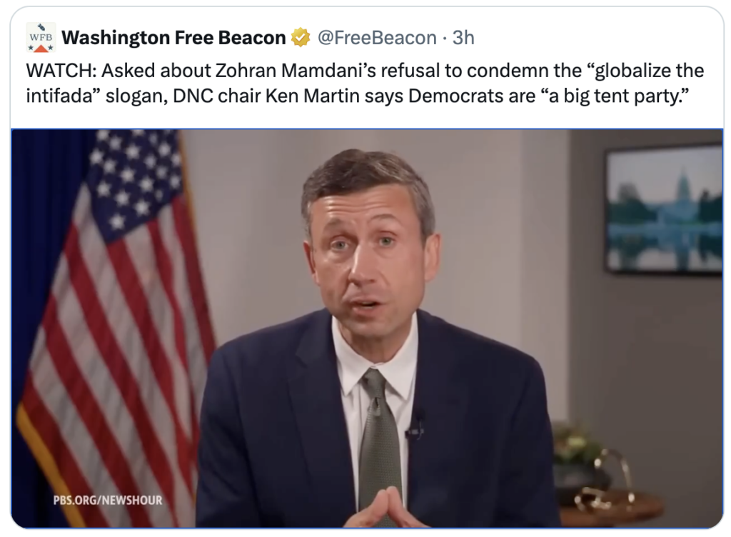 Crybaby DNC Chair Ken Martin just REFUSED to condemn the “globalize the intifada” slogan from the new face of the Democrat Party, Communist Zohran Mamdani.