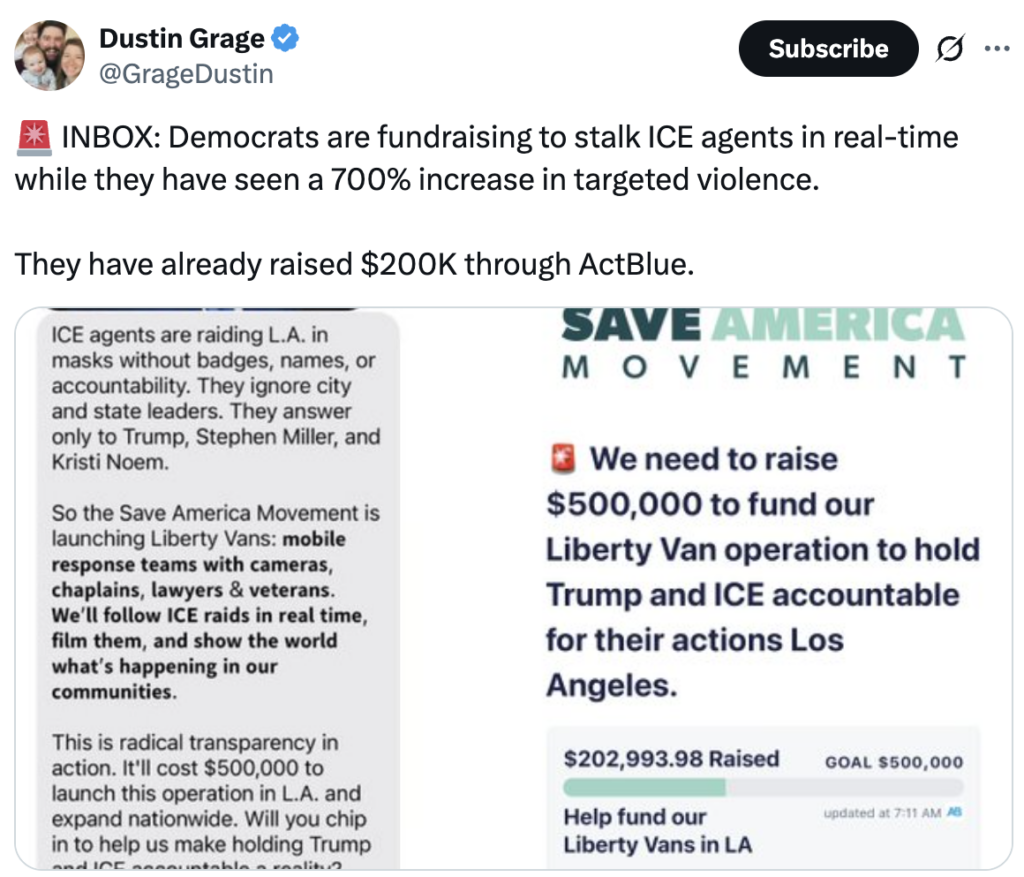 - National Democrats are explicitly targeting ICE officers and arguing that “masks and lack of uniforms have led to chaos in Los Angeles.”