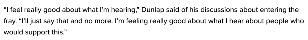 Despite National Democrats desperately telling Matt Dunlap to “back off,” Dunlap says he’s “feeling really good” about support for his potential bid: