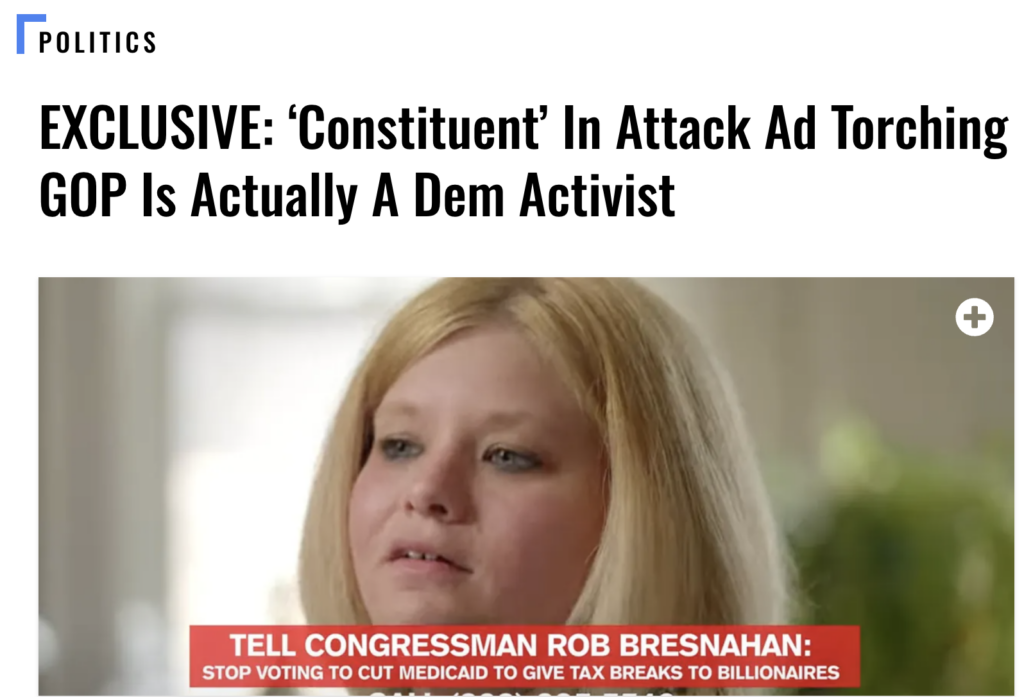 A new bombshell report reveals that Krysten, the “constituent” starring in an ad lying about Rep. Rob Bresnahan’s vote to protect Medicaid, is an elected Democrat and a party activist.