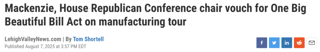 ICYMI: Rep. Ryan Mackenzie & Chairwoman Lisa McClain tour PA to tout One Big Beautiful Bill