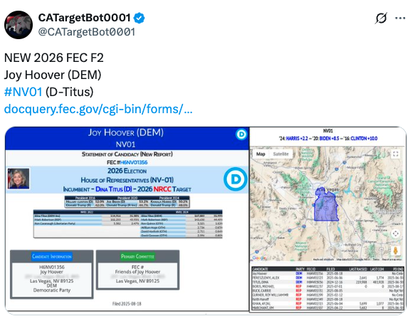 Another Democrat jumped in because Dina Titus is weak. Weak fundraising, weak support, and a crowded primary that proves just how out of touch she’s become. At this rate, she’s headed for the political retirement home.