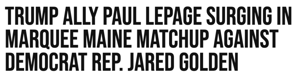 Trump Ally Paul LePage Surging in Marquee Maine Matchup Against Democrat Rep. Jared Golden