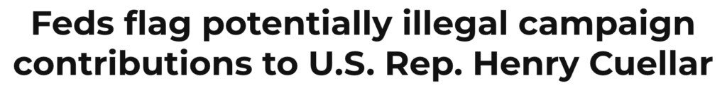 Corrupt Cuellar is at it again. The Congressman is already under federal indictment for bribery; now, he’s under fire for accepting illegal campaign donations.