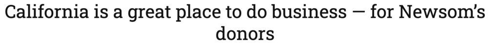 Now we know that Newsom’s top donors got millions in contracts, fat tax credits, plum board seats, and favorable executive actions. It’s the same old Sacramento story: write big checks, get even bigger paydays.