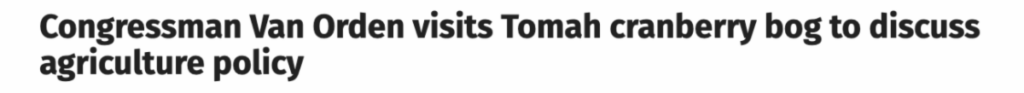 Congressman Derrick Van Orden visited Bosshard Bogs, a cranberry bog in Tomah, “to highlight farming issues and the importance of supporting agricultural producers in Wisconsin and across the nation.”