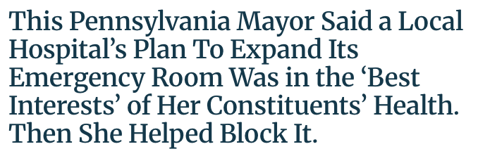 Geisinger Community Medical Center operates one of just two emergency rooms in Scranton, Pa. In 2023, its leaders advanced a plan to expand its ER, citing a lack of space for hospital beds that left doctors treating patients in closets and bathrooms. Scranton mayor Paige Cognetti (D.), now running for Congress against Republican incumbent Rep. Rob Bresnahan (Pa.), portrayed the expansion as necessary for her constituents’ health. Then she approved a zoning plan that effectively killed it.