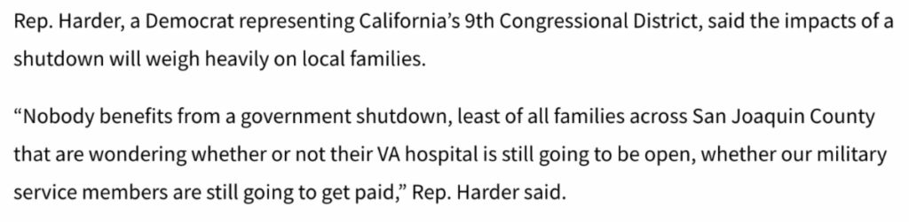 Out of touch Democrat Josh Harder knew exactly what the consequences when he votedto close the government: VA hospitals at risk, service members left without pay, and San Joaquin County families wondering how they’ll make ends meet.