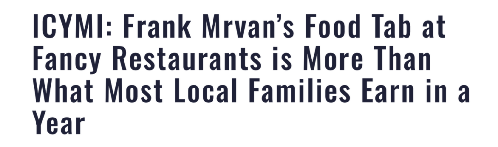 Reminder: Frank Mrvan has spent $85,000 in food and catering expenses which exceeds what most local Indiana families earn in a year.