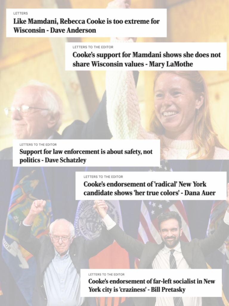 “The ideas of Zohran Mamdani and Rebecca Cooke are so incredibly out of the mainstream. She needs to be rejected at the ballot box, so Wisconsin isn’t turned into Mamdani’s New York City.” – Bill Pretasky