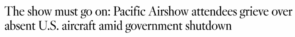 U.S. military aircraft were unable to participate in the Pacific Airshow in Huntington Beach thanks to out of touch Democrats Dave Min and Derek Tran’s government shutdown.