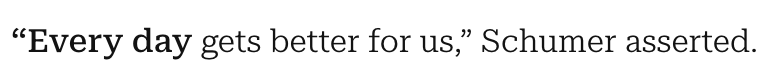 Meanwhile, Chuck Schumer, Hakeem Jeffries, and their band of radicals are celebrating, claiming “every day gets better for us.”