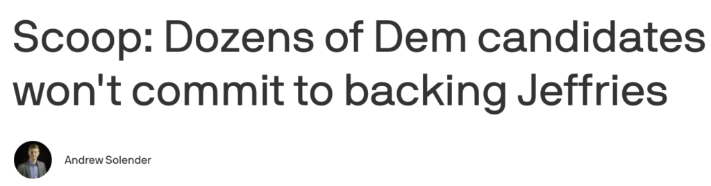 A new report spells bad news for so-called “Leader” Hakeem Jeffries, as dozens of Democrats running for House seats across the country said they either wouldn’t vote for Jeffries as party leader or declined to commit to doing so.
