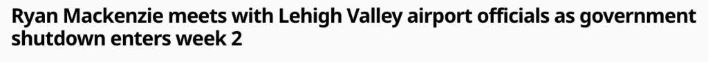 Ryan Mackenzie meets with Lehigh Valley airport officials as government shutdown enters week 2