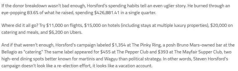 Out of touch Steven Horsford’s latest campaign report reads less like a re-election filing and more like the receipt from a Vegas high roller weekend.