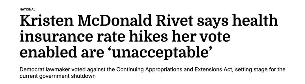 A new report is highlighting out of touch Democrat Kristen McDonald Rivet’s vote to shut down the government.