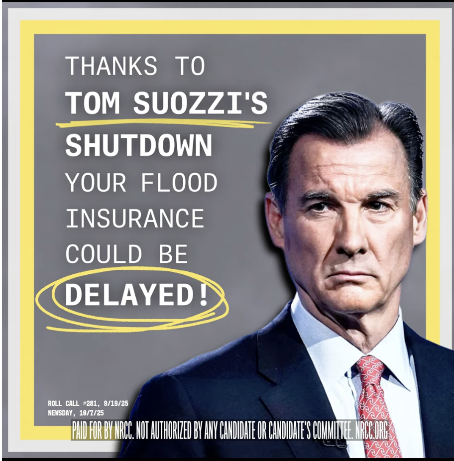 In case you missed it, the NRCC launched a paid ad campaign targeting Tom Suozzi and Laura Gillen for voting to shut down the government, risking Long Islanders’ access to flood insurance.