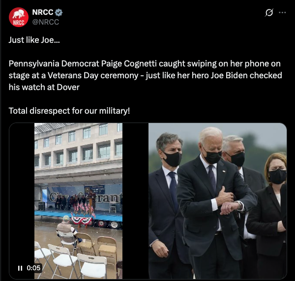 Cognetti is taking after an (actual) Scranton native and her personal hero, Joe Biden, who was famously caught checking his watch during a ceremony for the 13 service members killed in the Abbey Gate bombing.
